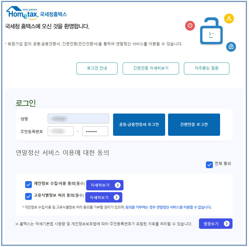 「간소화자료 일괄제공 서비스」 신청 방법 및 절차